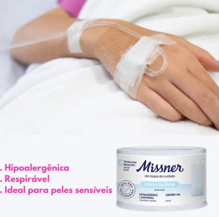A Fita de Silicone Missner é indicada para a fixação de curativos e dispositivos leves, sendo especialmente recomendada para pacientes com pele sensível, como idosos e recém-nascidos. Seu adesivo de silicone proporciona fixação segura, removendo-se suavemente sem agredir a pele.